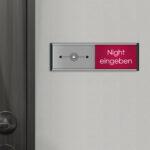 Das Schild besteht aus einem Aluminiumprofil und einer dazugehörigen Kunststoffplatte, so dass Sie den Status/die Botschaft des Raums leicht ändern können. Wählen Sie zwischen magnetischem oder doppelseitigem Klebeband + Schrauben.