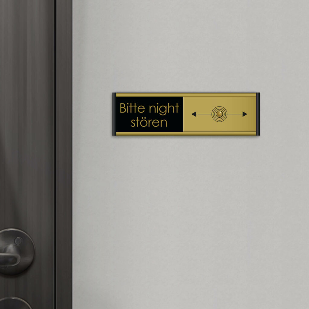 Das Schild besteht aus einem Aluminiumprofil und einer dazugehörigen Kunststoffplatte, so dass Sie den Status/die Botschaft des Raums leicht ändern können. Wählen Sie zwischen magnetischem oder doppelseitigem Klebeband + Schrauben.